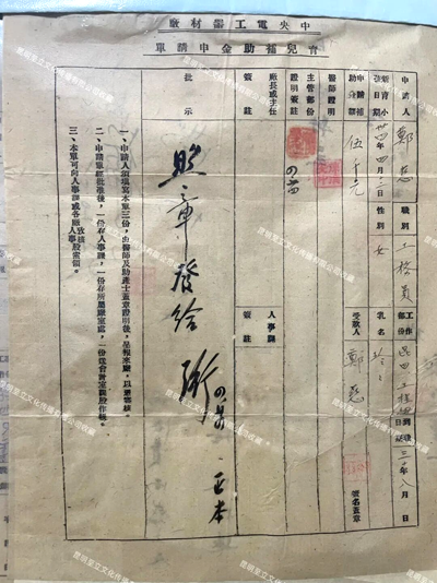 ▲1942年9月,中央电工器材厂(昆明电缆集团前身)发放职工育儿补助国币200元。