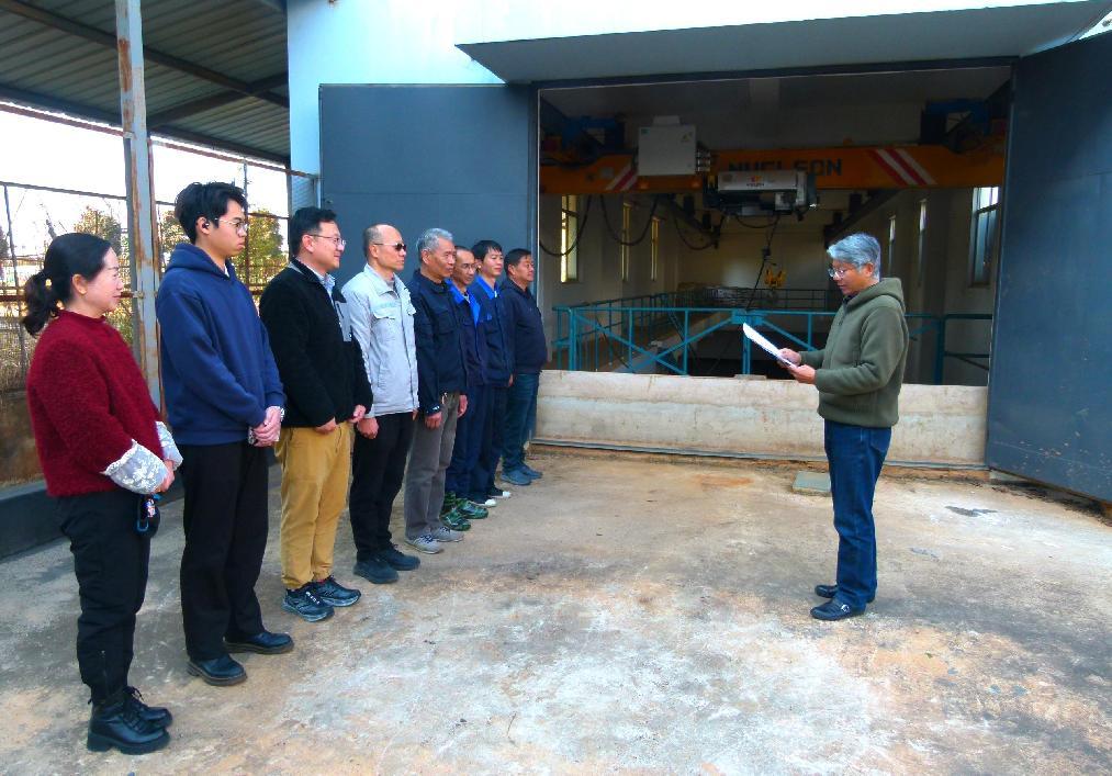 演练正式开始前,应急演练领导小组组长龚文涛带领全体参演人员深入学习《起重机应急救援预案和救援演练制度》,确保每位参与者都能精准掌握起重机突发事故的防范要点与救援措施,为后续演练筑牢理论基础。