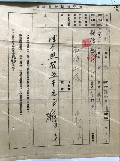 ▲1942年9月,中央电工器材厂(昆明电缆集团前身)发放职工育儿补助国币200元。