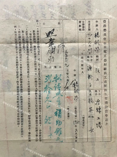 ▲1950年2月电工器材厂(昆明电缆集团前身)发放职工育儿补助银元20元。